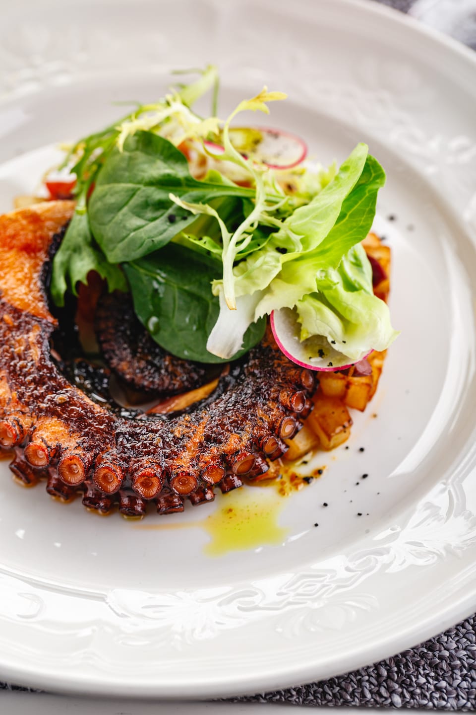 Step into a world of understated elegance and refined design. The restaurant's contemporary yet welcoming décor sets the stage for an unforgettable dining experience. Whether you're seeking an intimate dinner for two, a family celebration, or a business gathering, our versatile seating arrangements provide the perfect backdrop for any occasion.